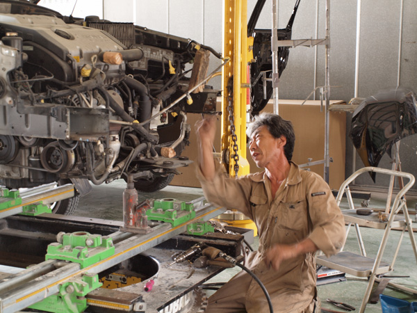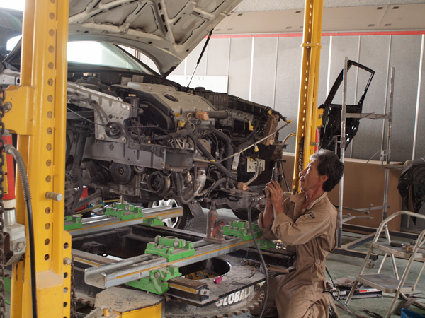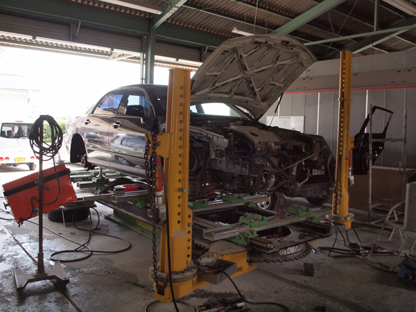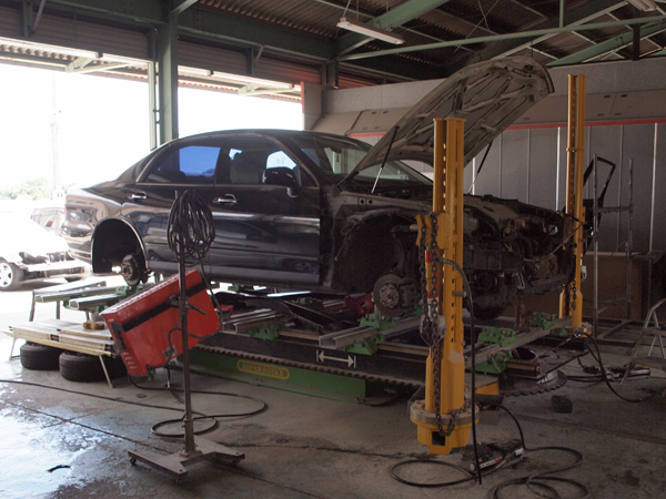 フレーム修正は、大きな事故をした時に自動車の命とも入れる骨組みを修正する作業です。
